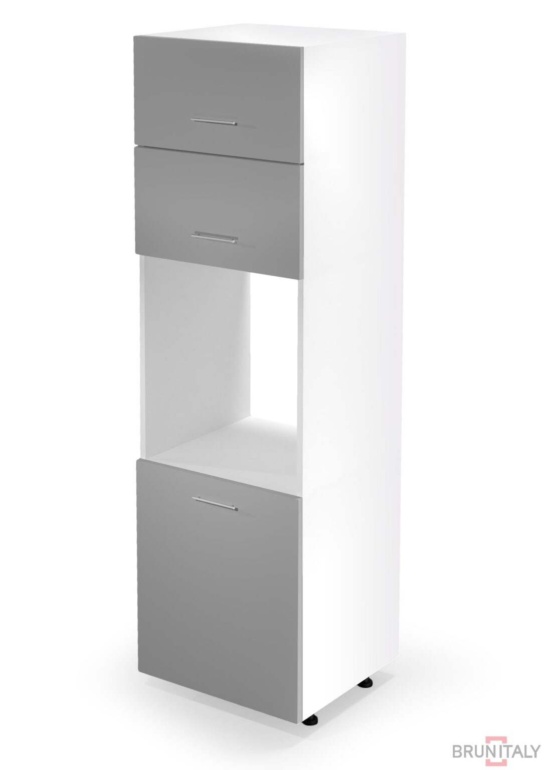 Dimensioni: 60/214/56 cm, Materiale: chipboard laminata / MDF ad alta gloss, colore: bianco / grigio chiaro Cabinet per il forno