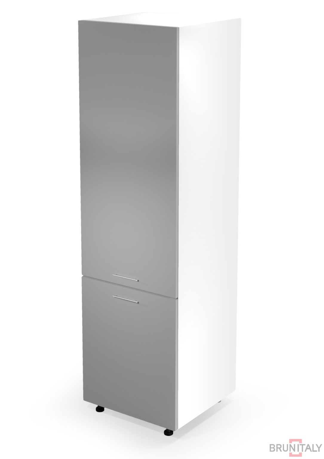 Dimensioni: 60/214/56 cm, Materiale: chipboard laminata / MDF ad alta gloss, colore: bianco / grigio chiaro Cabinet per frigorifero