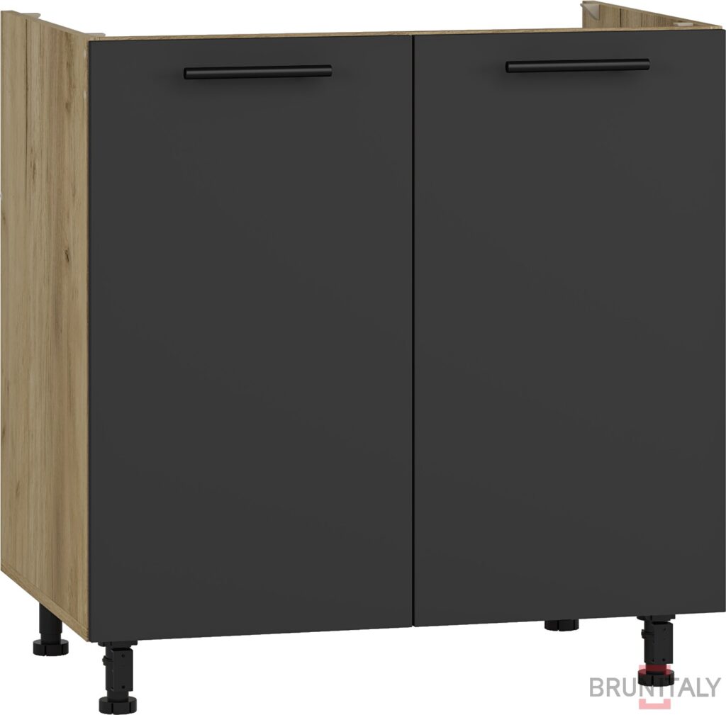 Lenght del set: 180 cm, meccanismo di chiusura morbida, piano di lavoro spesso. 38 mm, colore: frontale – quercia artigianale, corpo – antracite, piano di lavoro – antracite