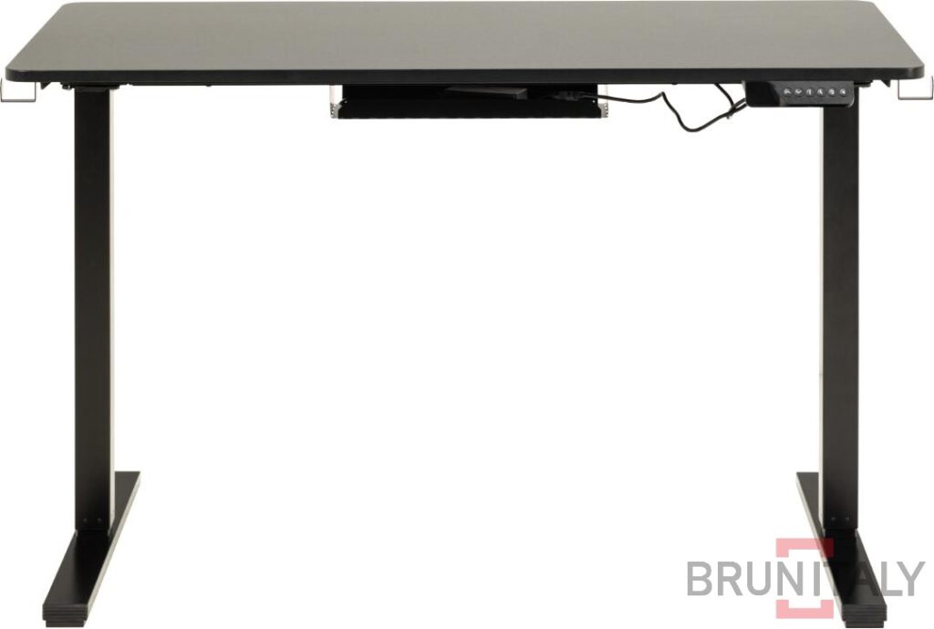 Scrivania per ufficio rettangolare del Cairo, melamina nera superiore, metallo rivestito in polvere nera di base, con 4 livelli preimpostati, tappo C + G, USB-C, regolazione elettrica e gestione dei fili, 120x60x73 cm