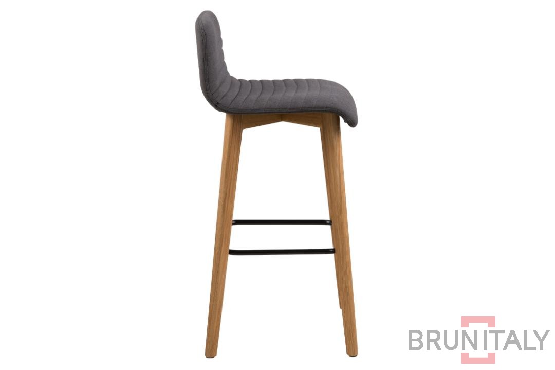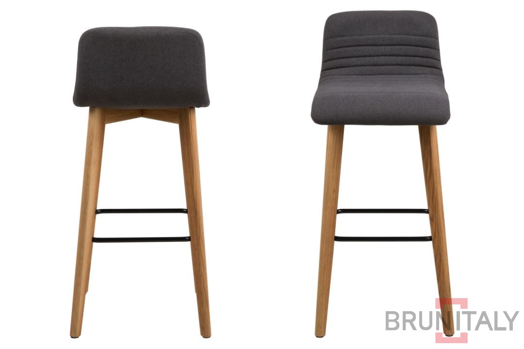 Sgabello da bar arosa, tessuto granada antracite 8, quercia oliata a base, con punti orizzontali, scatola 2 pezzi