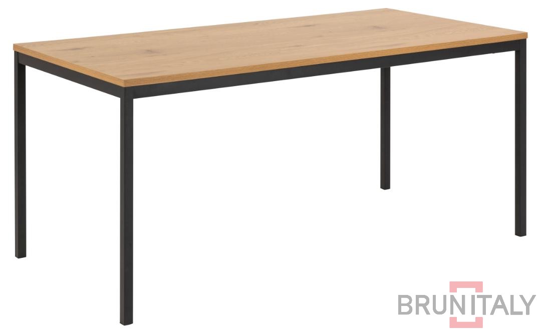 Tavolo da pranzo rettangolare seaford, melamina ruvida in quercia selvatica in alto, base matassa matamina in polvere ruvido in polvere ruvido, 160x80x74 cm