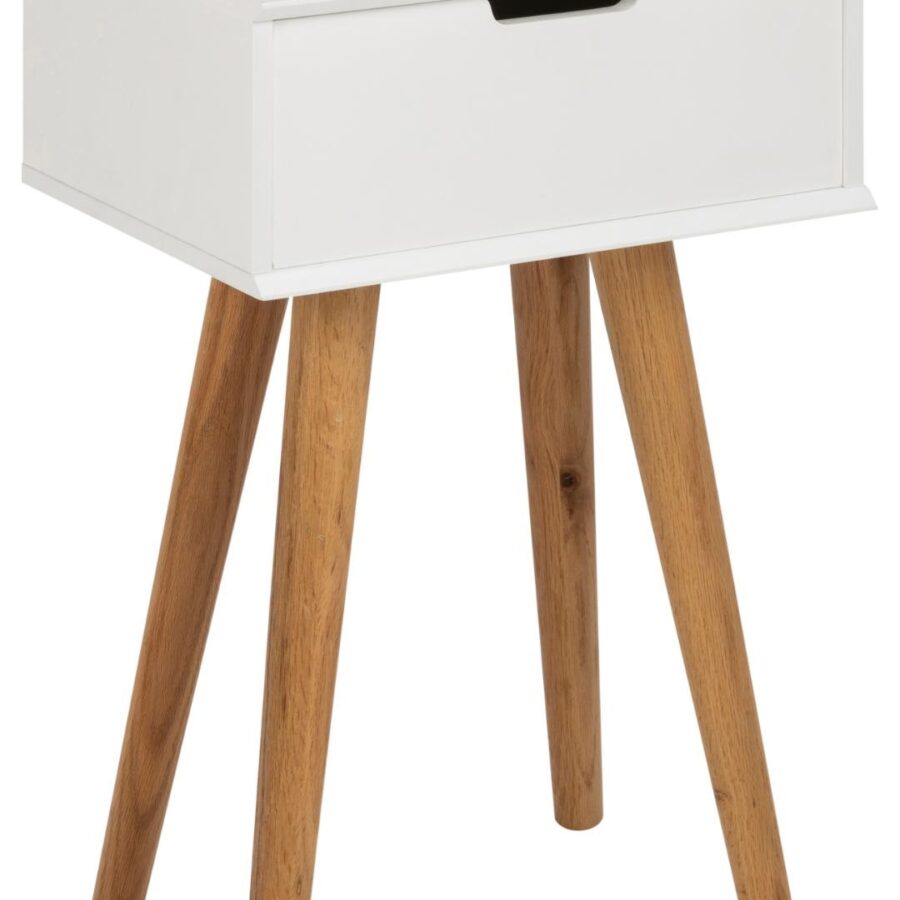 Tavolo da letto rettangolare Mitra, top e cassetto bianco UV dipinto UV MDF, rovere laccato NC di base, 40x30x61,5 cm