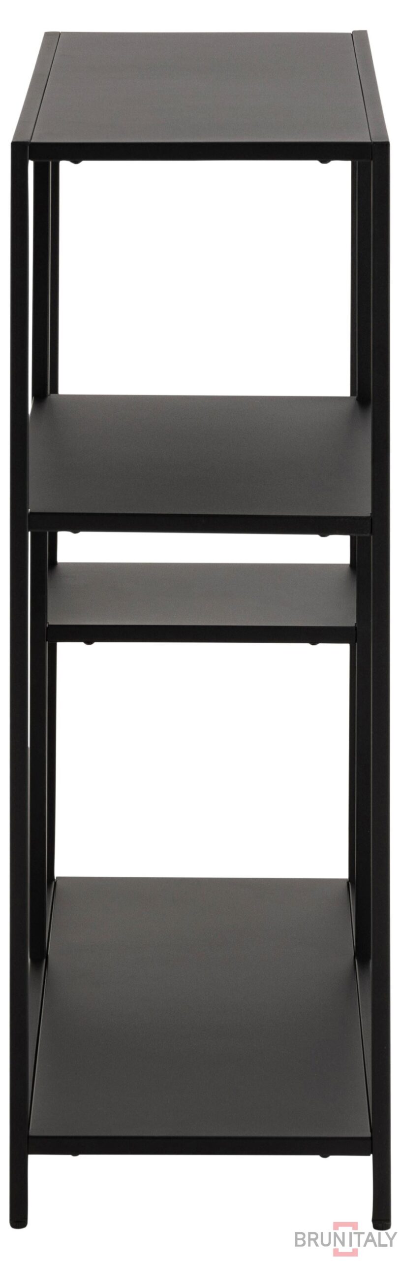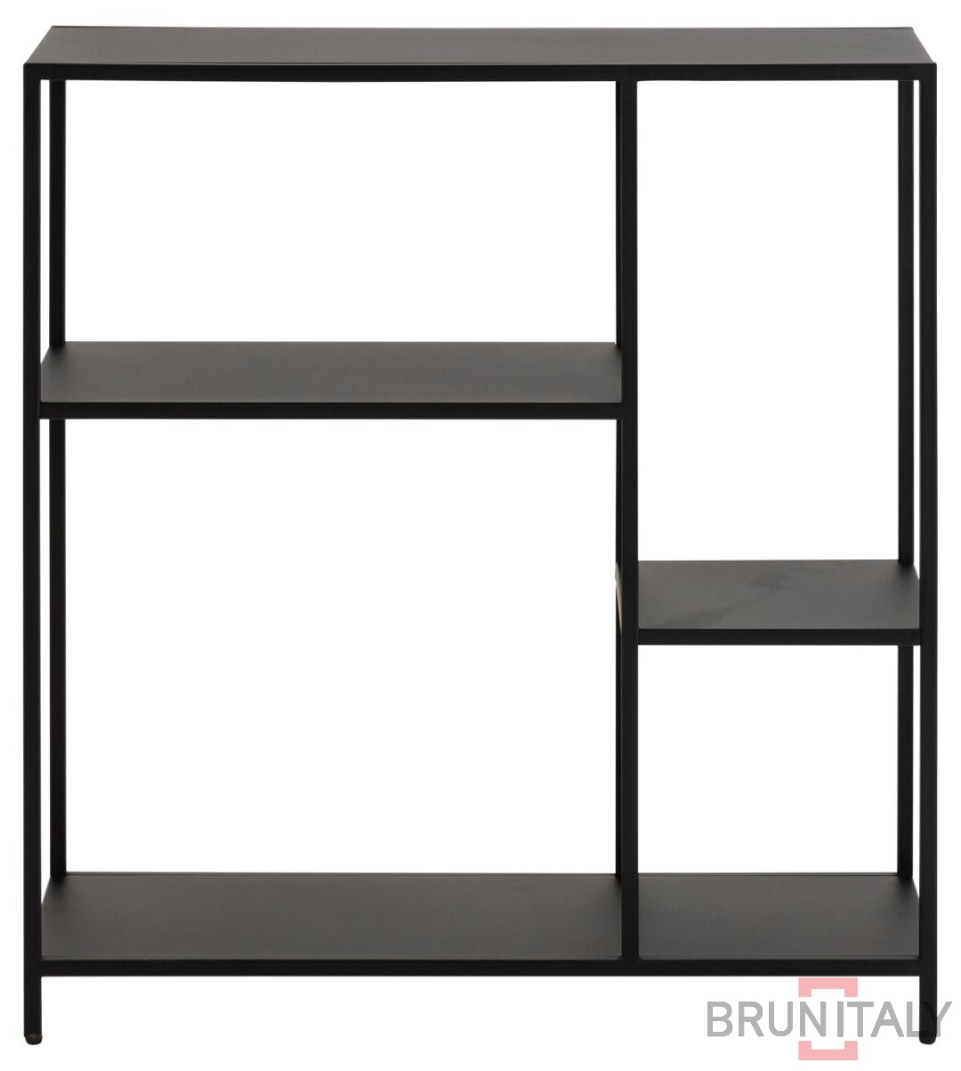 Libreria di Newcastle, cornice, 3 ripiani e metallo a polvere ruvida nera Matt, con dettagli asimmetrici, 79.5x30x86 cm