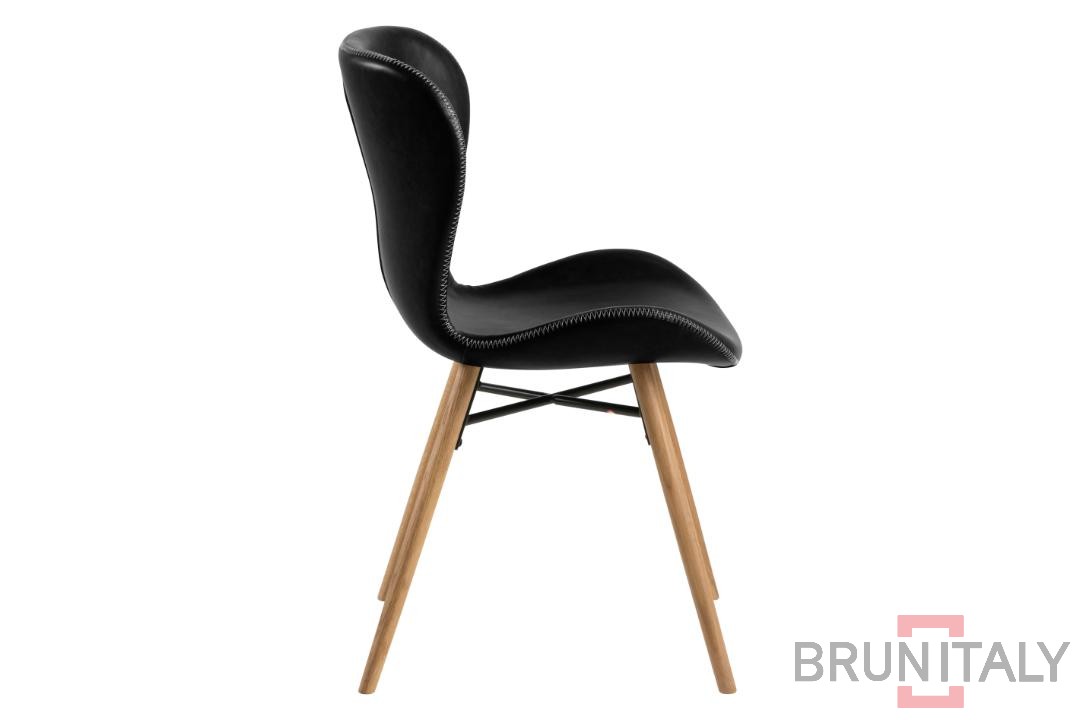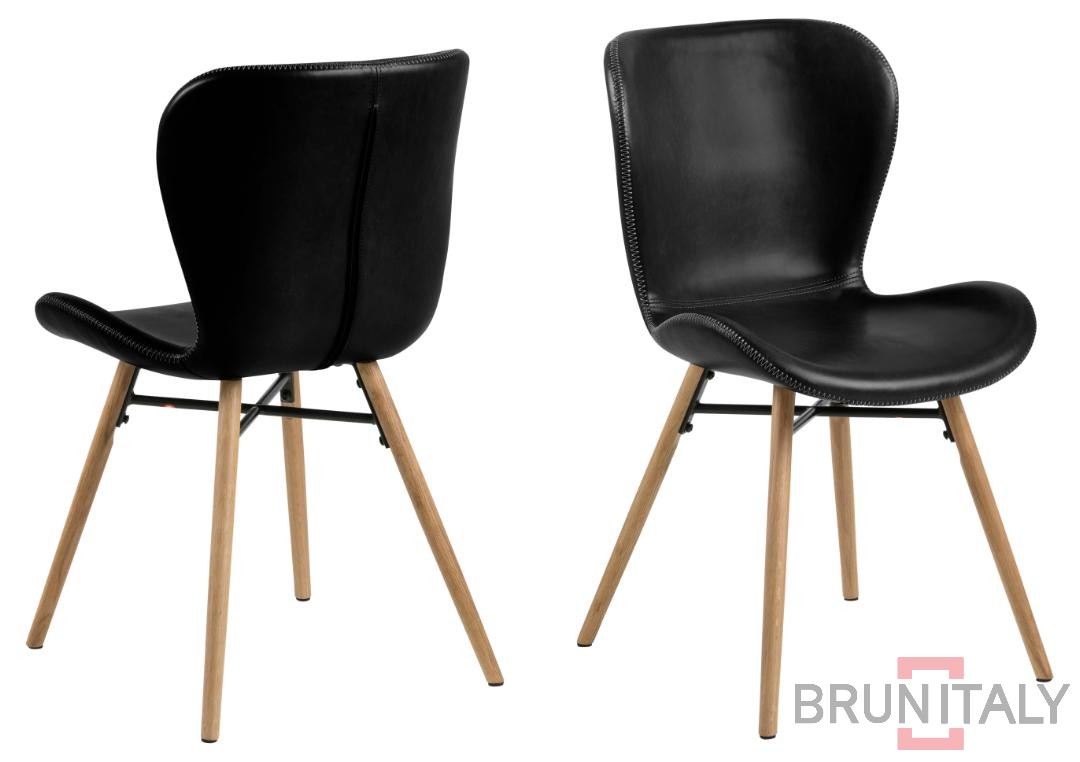 Batillada -A1 sedia da pranzo, PU RETRO Black 247, quercia oliata da base, con punti grigi, punti a zigzag e zip, scatola 2 pezzi
