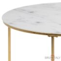 Bolton -A1 tavolino rotondo, top bianco in cristallo in cristallo in marmo temperato e vetro smerigliato, metallo cromatico in oro base, Ø80×44 cm