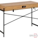 Scrivania rettangolare di angus rettangolare, carta ruvida in quercia selvatica superiore, metallo rivestito in polvere ruvida nera matto, con maglia metallica, scomparto aperto, porta scorrevole e foro del filo, 110x50x75 cm