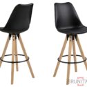 Sgabello da bar Dima, PU Black D-158 e polipropilene rotondo nero Matt, base laccata a 4 stelle NC in legno laccato NC, scatola 2 pezzi