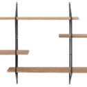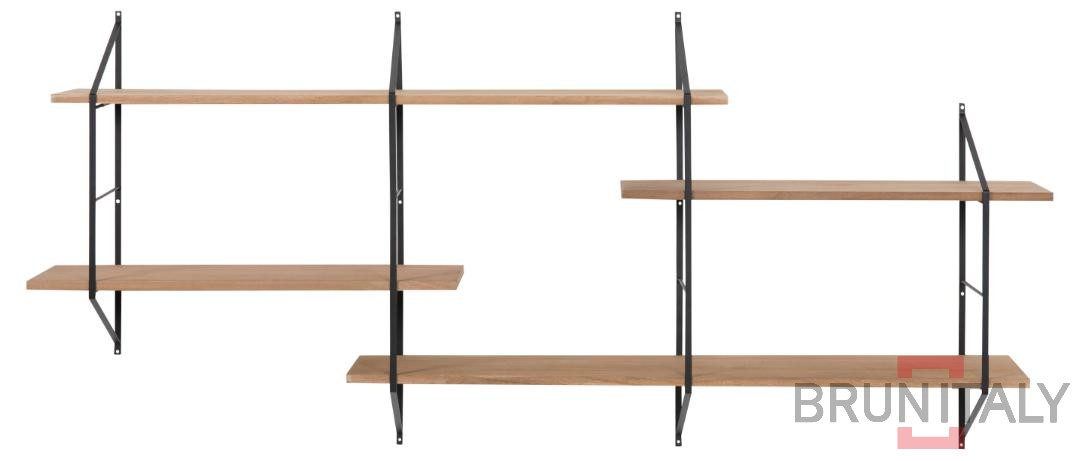 Scaffale a parete rettangolare di Belfast, telaio metallico rivestito in polvere nera Matt, 4 ripiani Matt Paulownia WB Lacroned, con dettagli asimmetrici, 191×25.5×79 cm