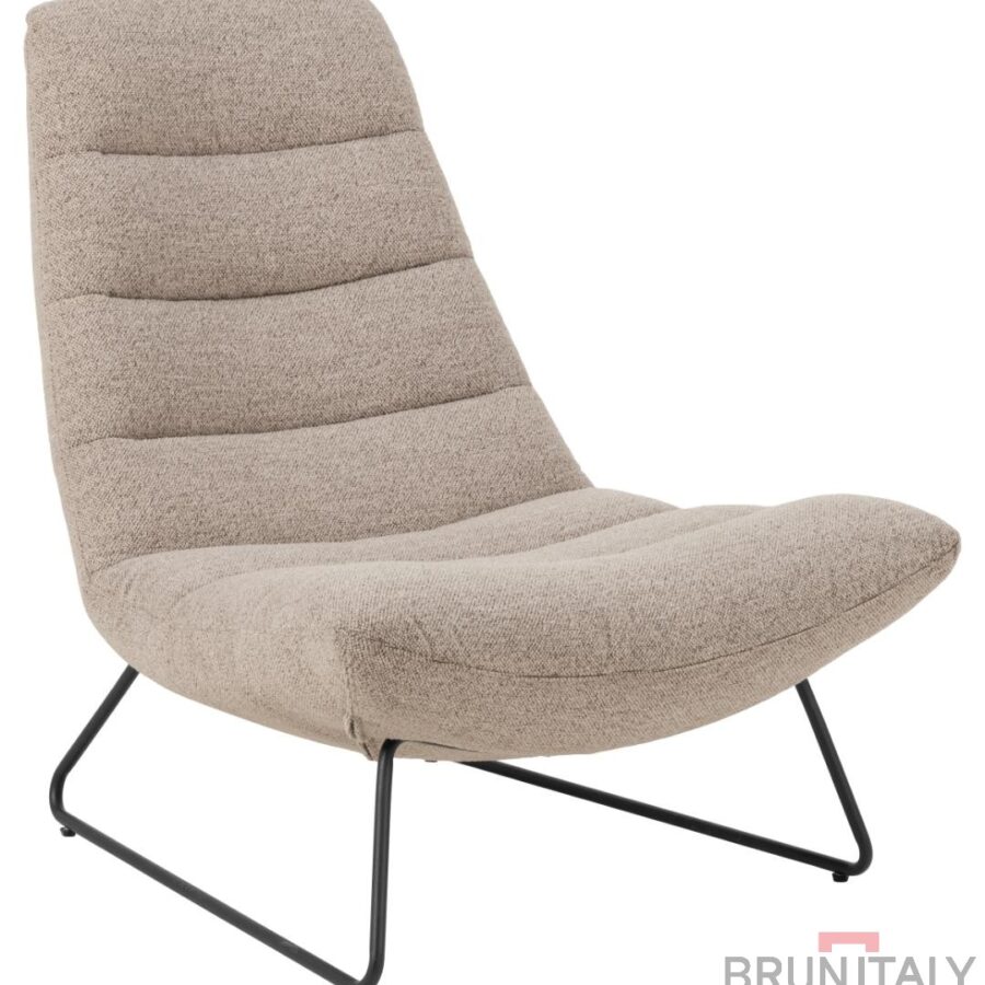 Milford Lounge Chair, Monza Fabric Beige 60, Sledge Base Black Black Ruggy Power Fetal, con punti orizzontali, 82.5x93x97 cm