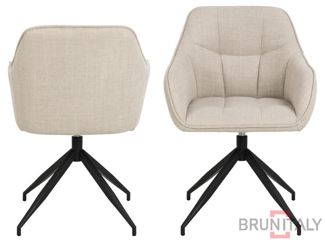 Sedia da pranzo Brenda con bracciolo, tessuto basilico beige 24, base a 4 stelle mata ruppa di metallo rivestito in polvere ruvido, con cuciture quadrate e girevole